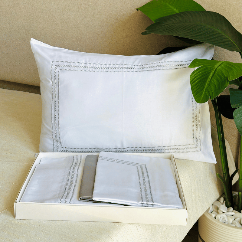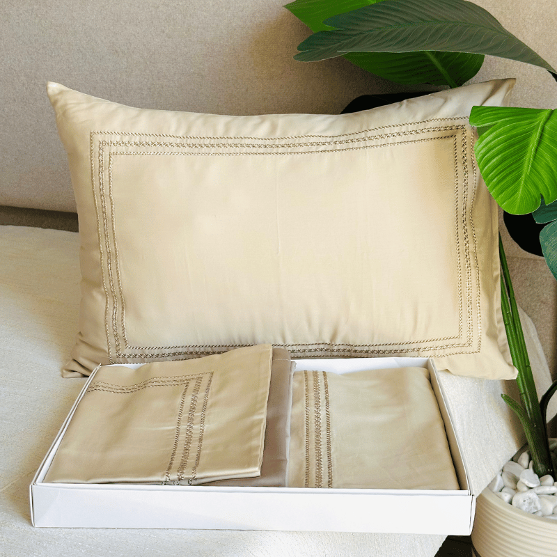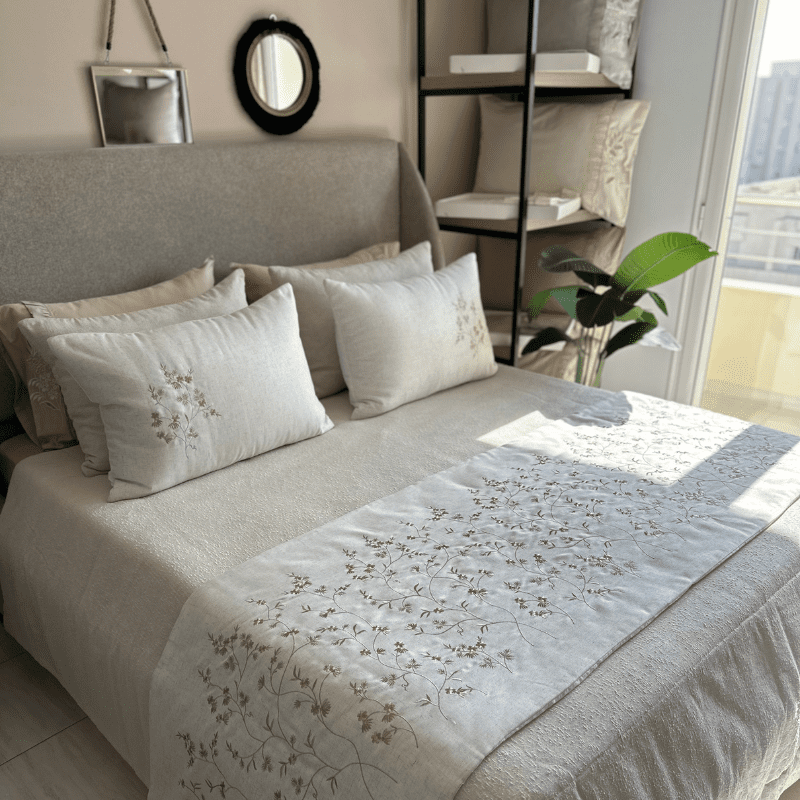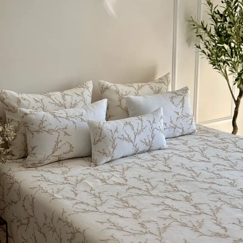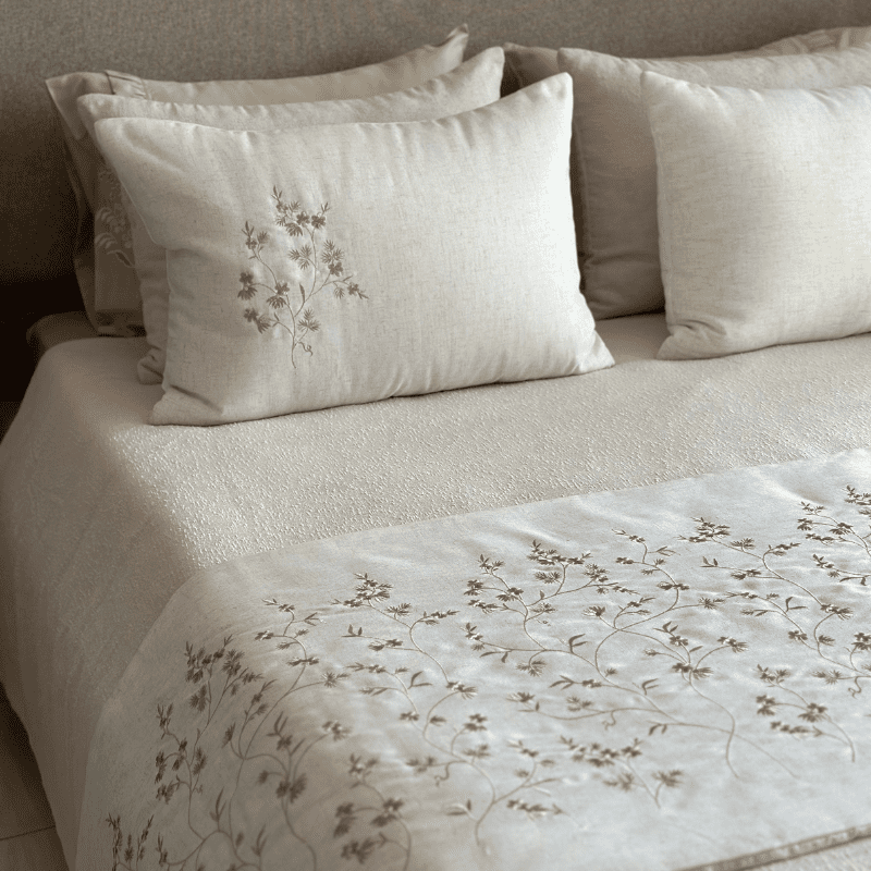 🪡 Couvre-lit brodé avec 4 taies d’oreiller