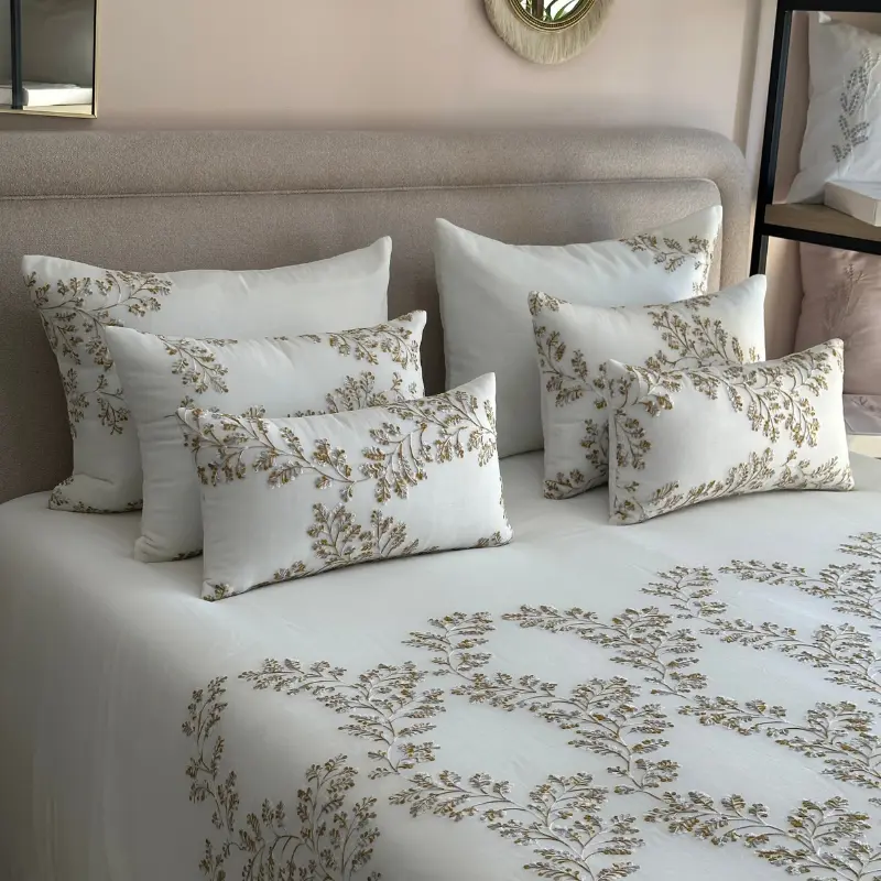 Le couvre lit Fatoum Tunisie vous offre une expérience de sommeil luxueuse et raffinée. Composé de 7 pièces, cet ensemble comprend :